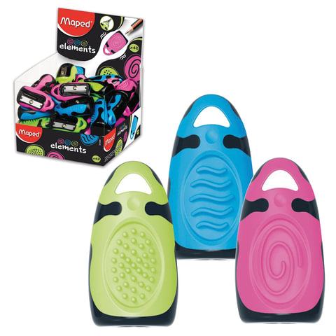 Точилка MAPED (Франция) "Elements", без контейнера, корпус ассорти, дисплей, 501600
