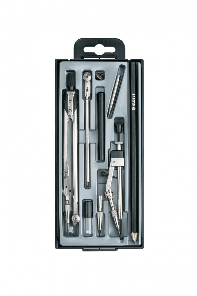 Готовальня Globus "Техника"  предназначен для школьников старших классов и студентов. В набор входит циркуль стальной, никелированный, кронциркуль, пенал с запасным грифелем, карандашная вставка, ручка, удлинитель, игольная вставка, запасной винт, карандаш черно-графитный. Поставляется в пластиковом футляре с прозрачной крышкой.