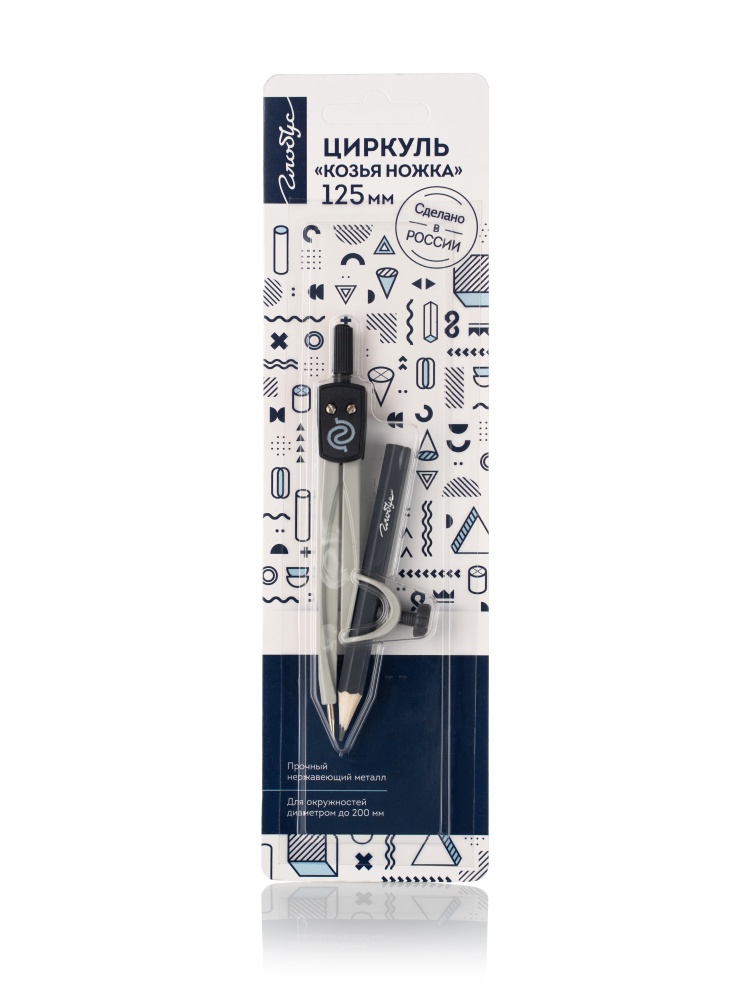 Циркуль 125 мм, подойдет для окружностей до 200 мм. Карандаш Чертежник. Упаковка: блистер, европодвес.