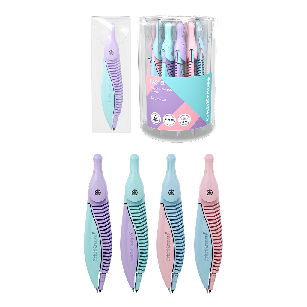 Циркуль пластиковый ErichKrause Пастель, 122мм, ПВХ чехол, ассорти (в тубусе по 24 шт)