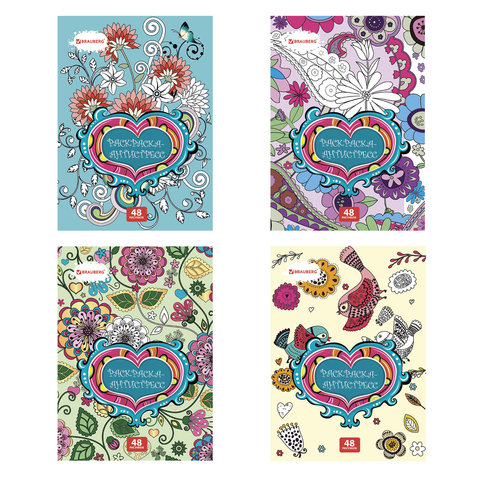 Раскраска-антистресс, 48 рисунков, 24 листа, 210х290 мм, 120 г/м2, скоба, BRAUBERG, 104150
