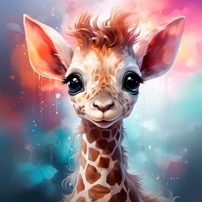 Холст с красками 30х30 по номер. в кор "Малыши" (20цв) Чудесный дитёныш жирафа (арт. Х-6325)|РЫ|Х-6325