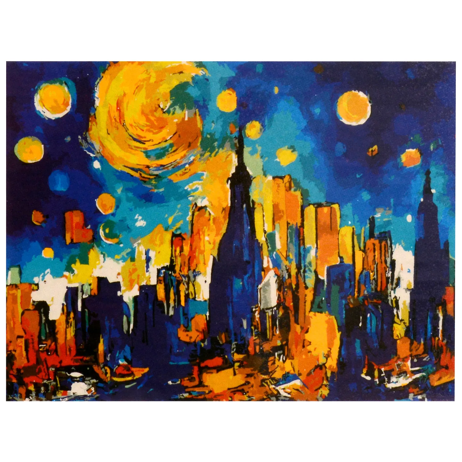 Холст с красками 30х40 см по номерам (в коробке) (24 цв.) Звездное небо мегаполиса (Арт. Х-8555)|РЫ|Х-8555