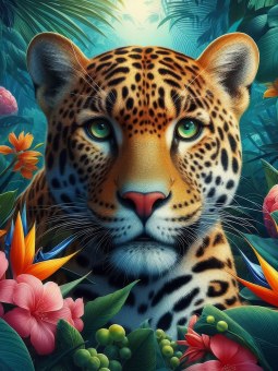 Холст с красками 30х40 см по номерам в коробке (30цв.) Леопард в джунглях (арт. ХК-5220)|РЫ|ХК-5220