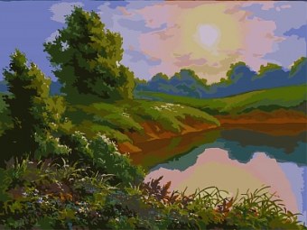 Холст с красками 30х40 см по номерам (в коробке) (30цв.) Летний рассвет над прудом (Арт.Х-4177)|РЫ|Х-4177