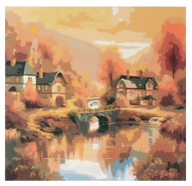 Холст с красками 40х40 см по номерам (в коробке) (30 цв.) Домики у ручья (арт. Х-5638)|РЫ|Х-5638
