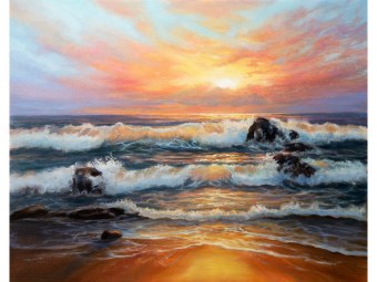 Холст с красками 40х50 см по номерам (в коробке) (30цв.) Волны на закате (Арт.Х-4617)|РЫ|Х-4617