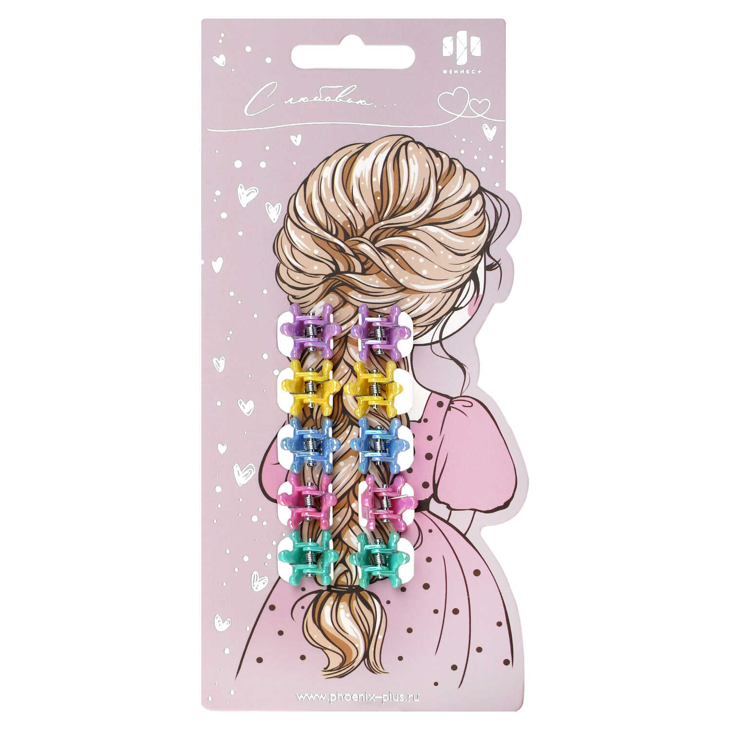 Набор заколок для волос «крабик», глянцевые, перламутровые, арт. 71805 / 10 КОРОНЫ (в наборе: 10шт., 1,3 см, полистирол, цвет: голубой, жёлтый, изумрудный, розовый, фиолетовый, подложка из мелованного|Фе|71805