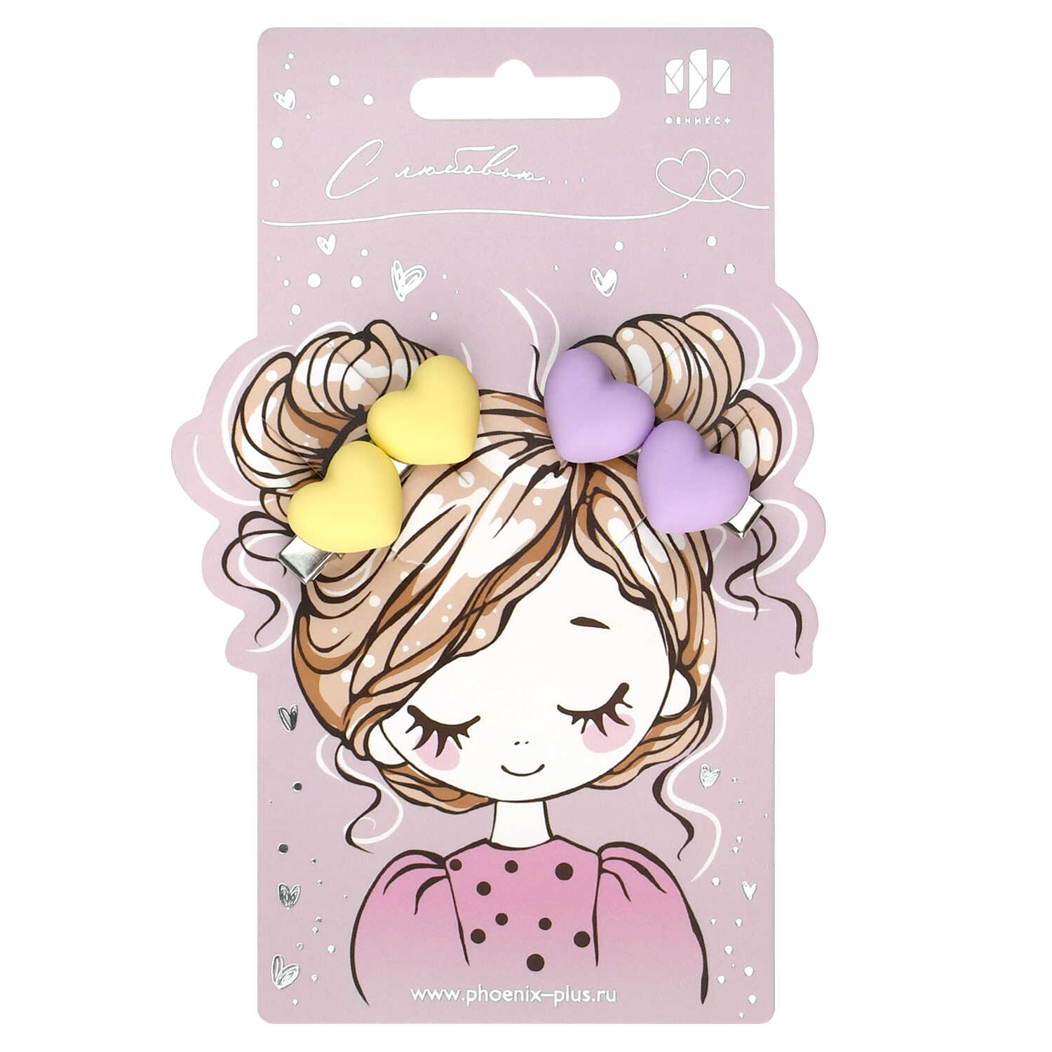 Набор заколок для волос «зажим», арт. 71785 / 10 СЕРДЕЧКИ (в наборе: 2шт., 4 см, черный металл, полиметилметакрилат, цвет: жёлтый, сиреневый, подложка из мелованного картона + ПЭТ-пакет с европодвесом|Фе|71785