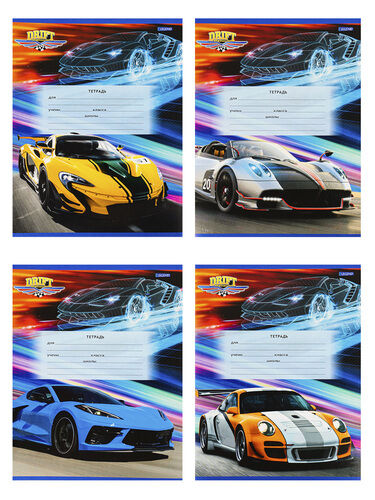 TM"Legend" Тетрадь КЛЕТКА 12 л. СТРЕМИТЕЛЬНЫЕ АВТОМОБИЛИ-2 (12-4333) цвет.мелов.обл.,4 диз. в короб|Из|12-4333