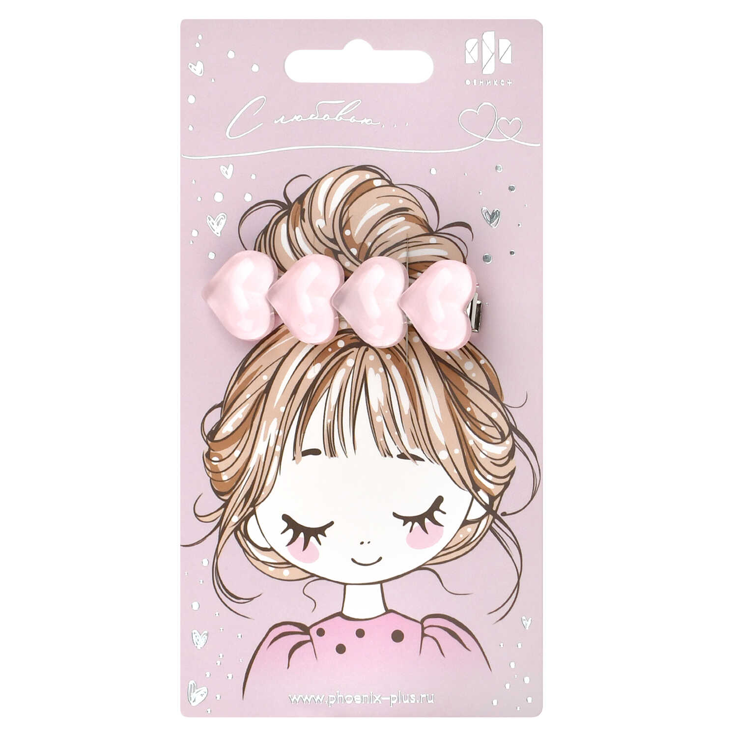 Заколка для волос «зажим», арт. 71792 / 10 СЕРДЕЧКИ (в наборе: 1шт., 6 см, черный металл, эпоксидная смола, цвет: розовый, подложка из мелованного картона + ПЭТ-пакет с европодвесом)|Фе|71792