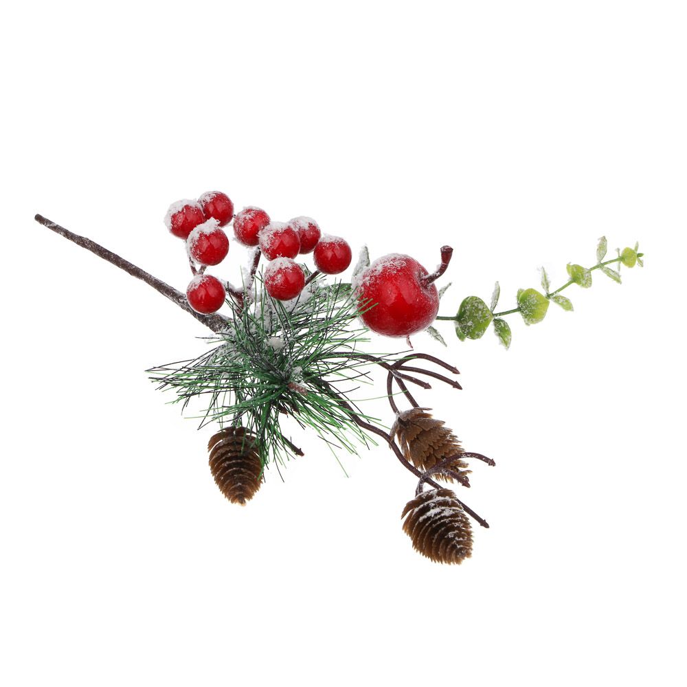 Декор новогодний 30см "Веточка заснеженная с ягодами"