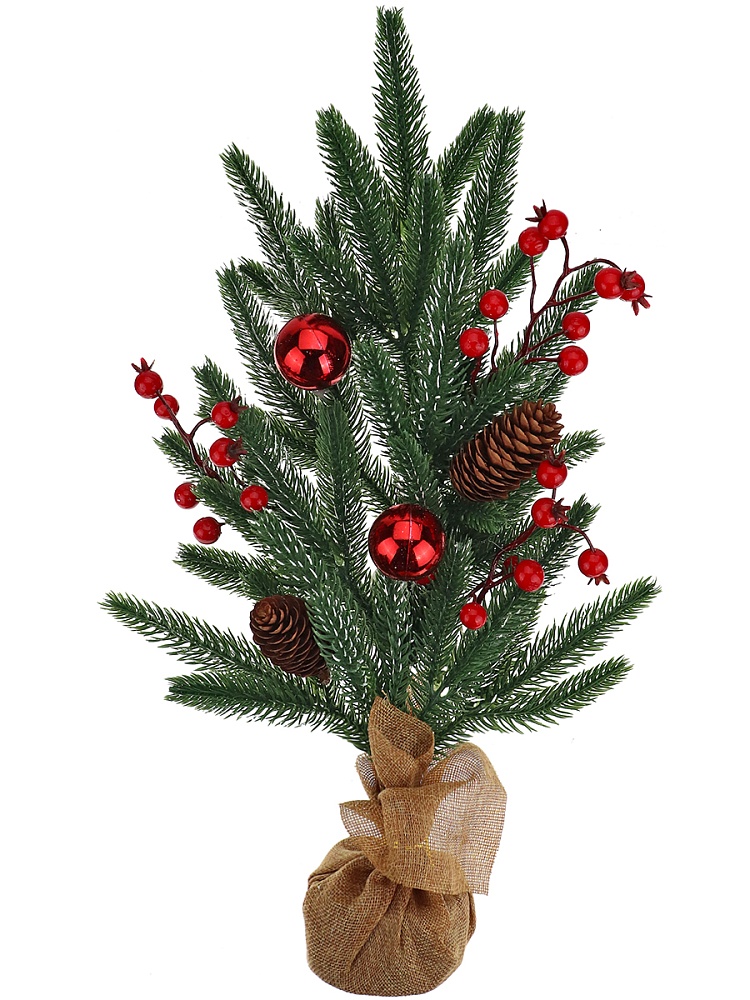 Декоративная елочка поможет создать новогодний уют, не занимая много места. Она украсит рабочее место в офисе или послужит великолепным декором домашнего интерьера. Елка выполнена из ПВХ и красиво декорирована, что создает по-настоящему праздничный вид. Размер: 50 см.