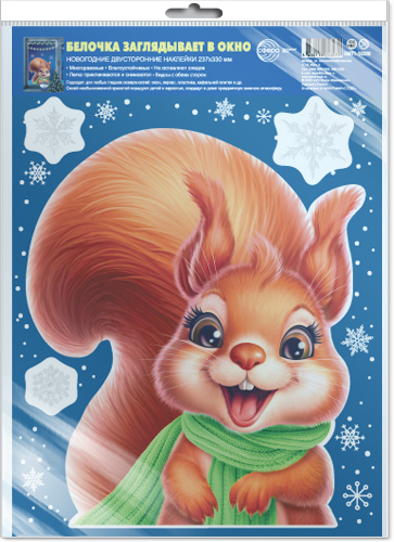 Витражная наклейка 23*32см "Белочка заглядывает в окно" многоразовая в упаковке