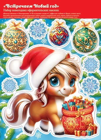 Витражная наклейка 24*33см Символ года "Лошадка", двусторонняя