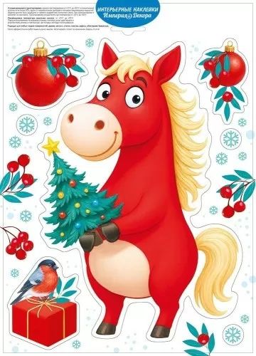 Витражная наклейка 33*23см Символ года "Подготовка к празднику"