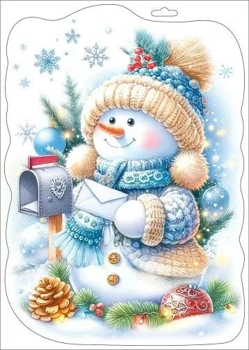 Витражная наклейка 33*23см "Снеговик с письмом" двусторонняя