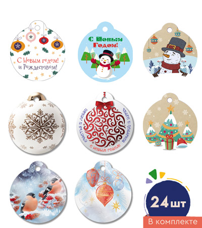 Набор бирок 55*60мм "Новогодние" 24шт