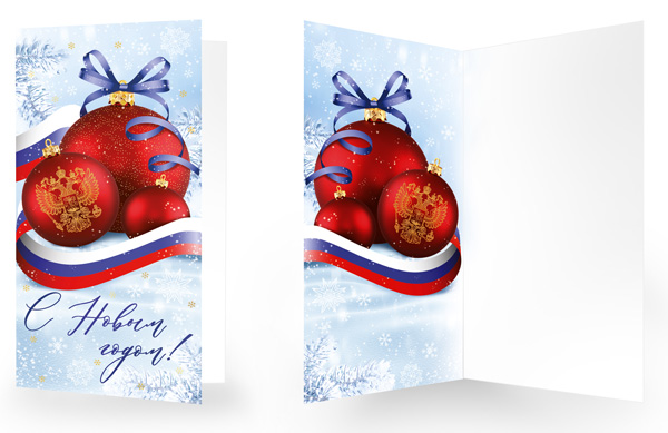 Открытка евроформата, украшенная отделкой из золотой фольги, поможет красиво оформить новогодний подарок другу или подруге, коллеге или близкому человеку. Открытка выполнена из плотного картона, поэтому надолго сохранит свой нарядный внешний вид.