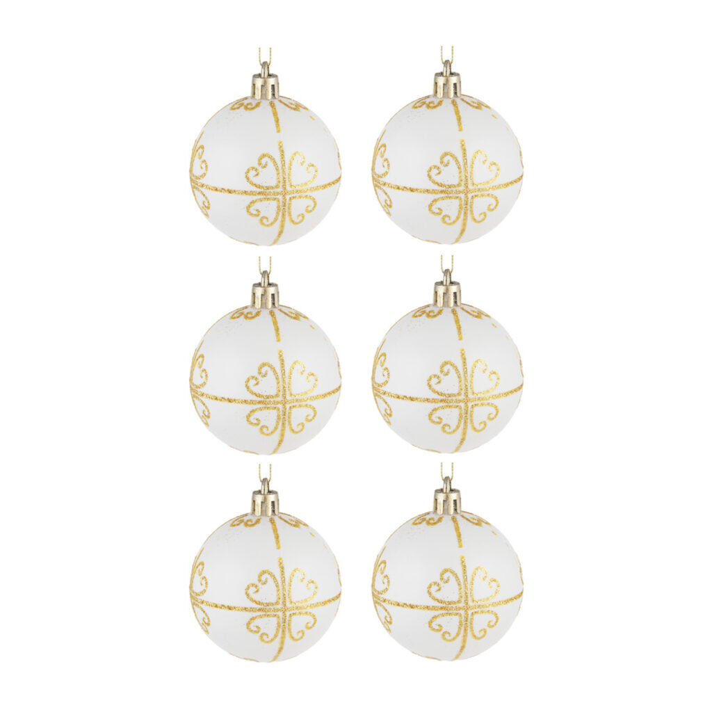 Набор елочных шаров 6 см, 6 шт., белый с золотом, пластик
