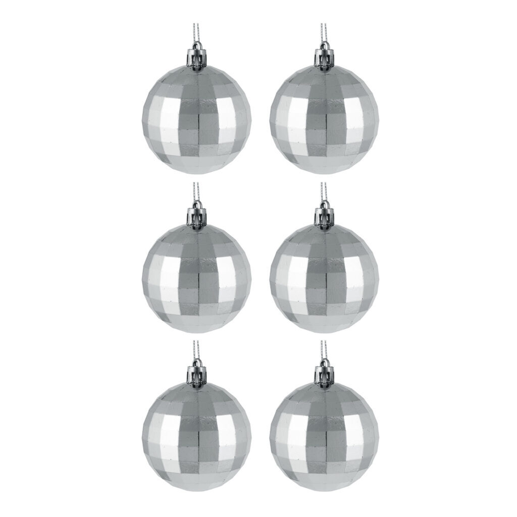 Набор елочных шаров 6 см, 6 шт., серебро, пластик
