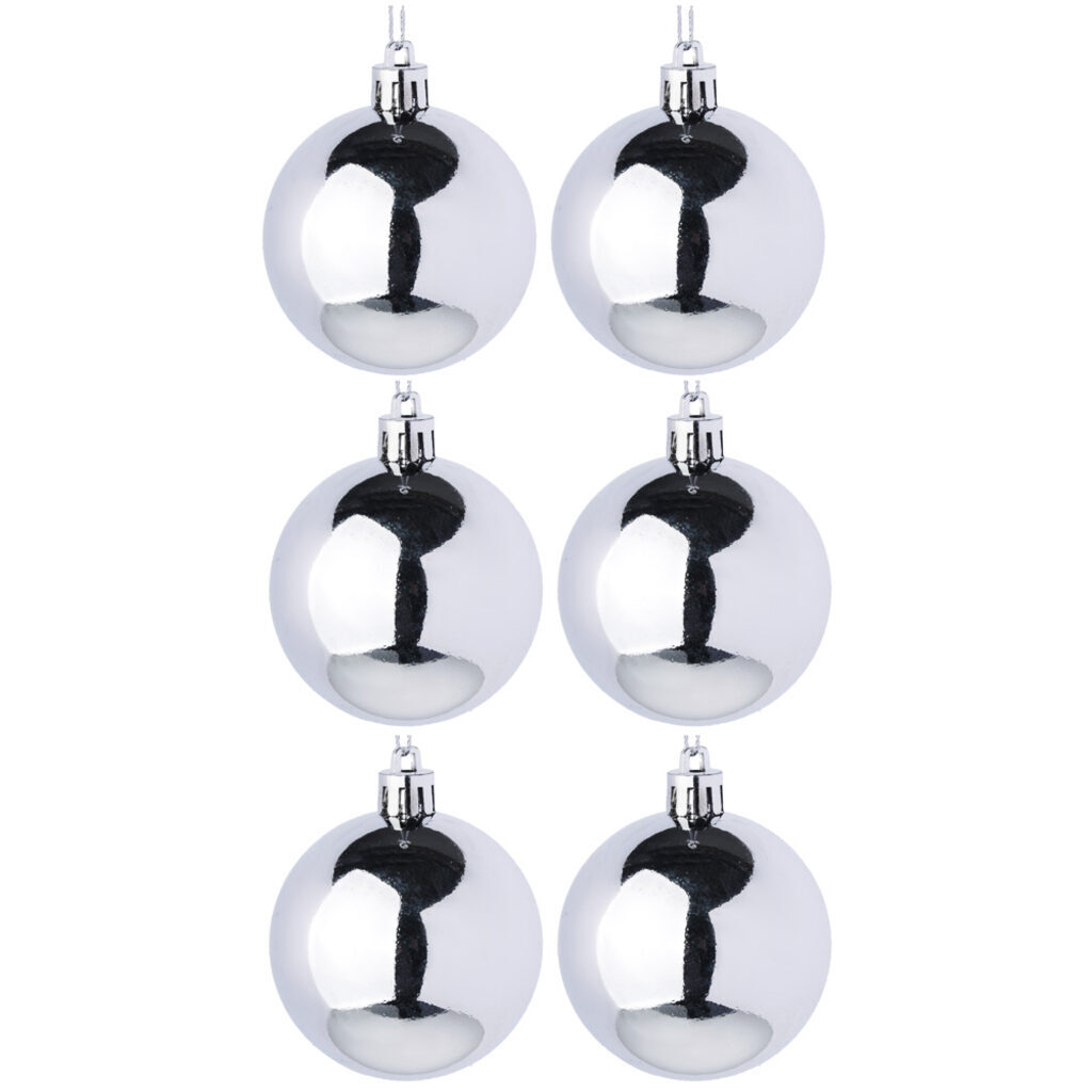Набор елочных шаров 6 см, 6 шт., серебро, пластик