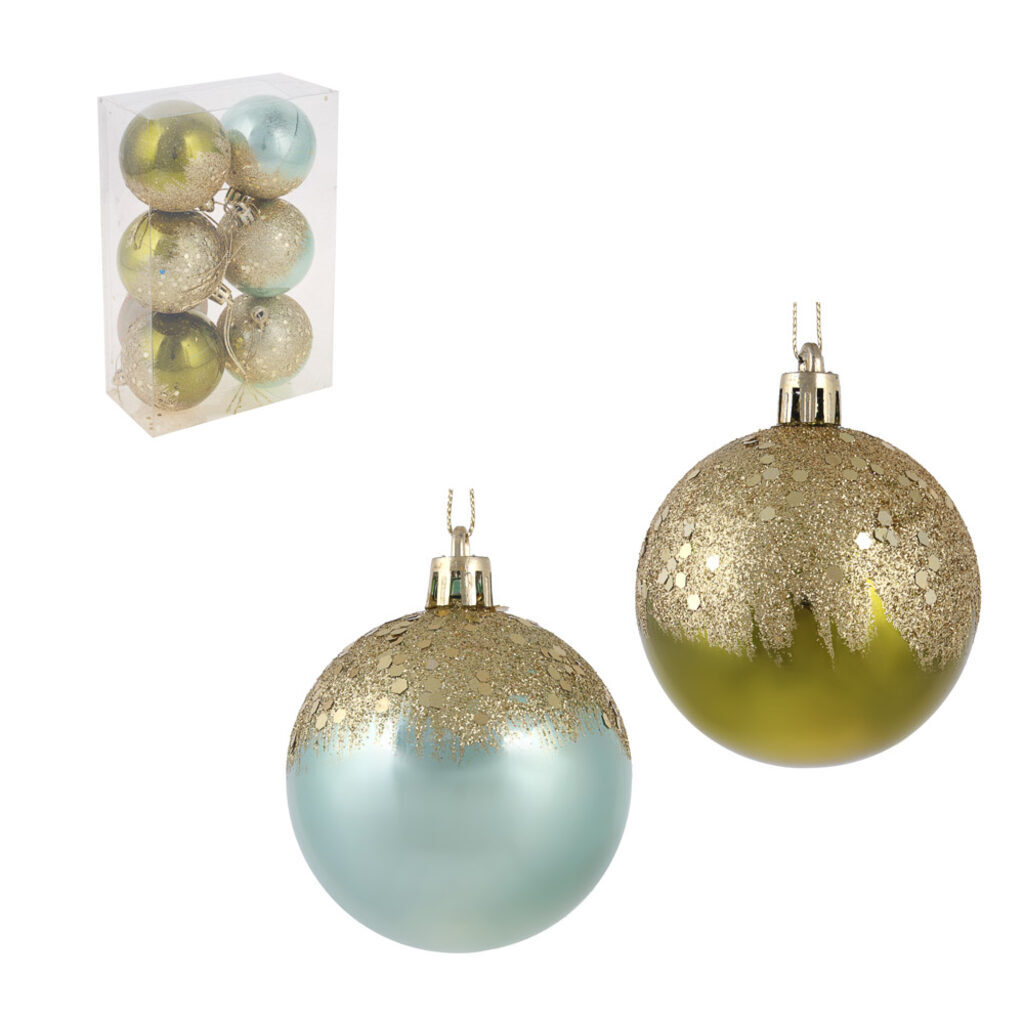Набор елочных шаров 6 см, 6 шт., зеленый с золотом, пластик