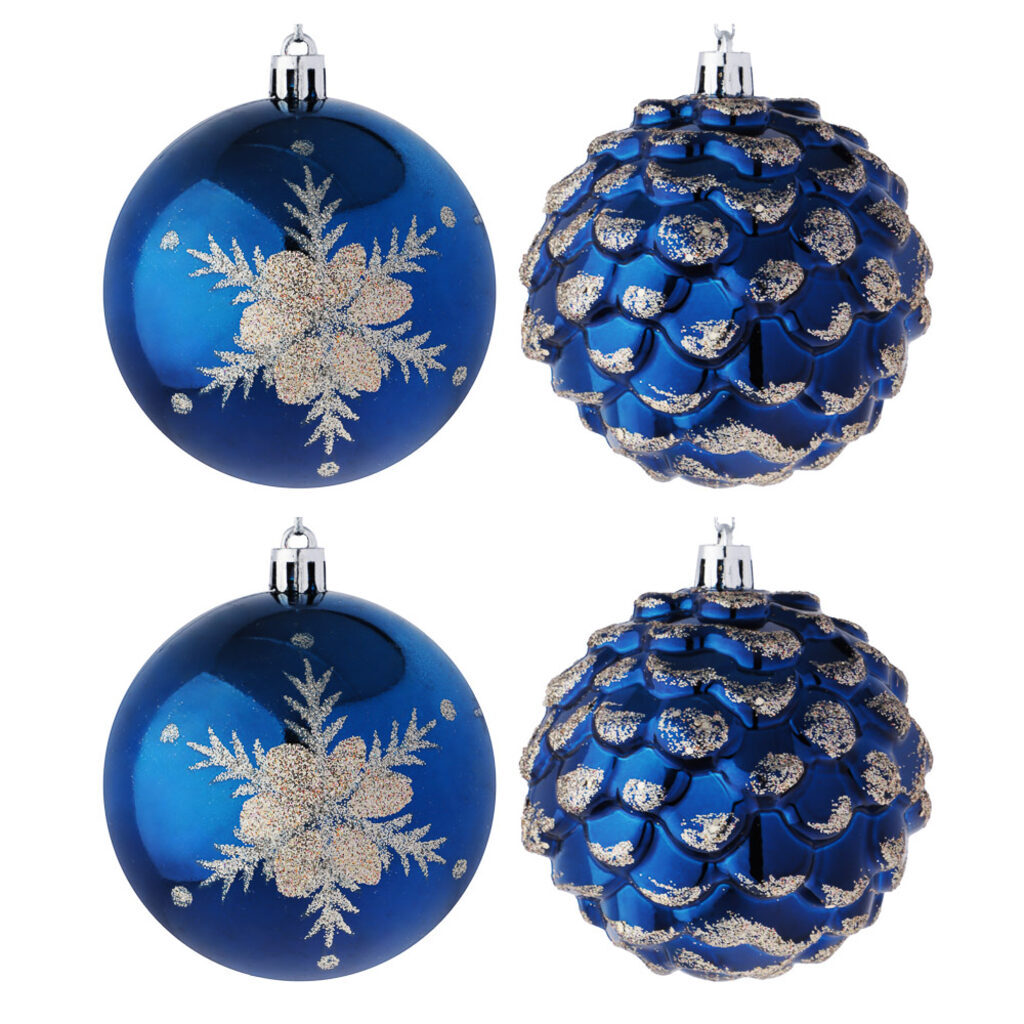 Набор елочных шаров 8 см, 4 шт., синий, пластик