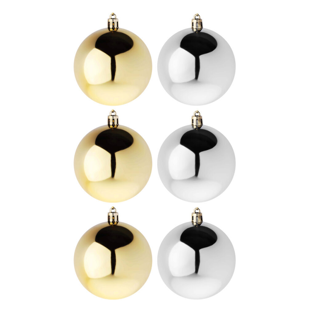 Набор елочных шаров 8 см, 6 шт., золото/серебро