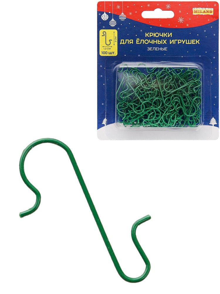 Набор металлических креплений для ёлочных украшений станет незаменимым новогодним аксессуаром для каждой ёлки. Если элемент для подвешивания потерялся, испортился или отсутствовал изначально, можно без затруднений разместить игрушку на новогоднем дереве. Крючки с лёгкостью выдерживают игрушки и не ломаются под их весом. Количество в наборе: 100 шт. Размер: 3х1,2 см. Цвет: зеленый.