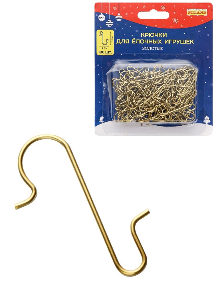 Набор металлических креплений для ёлочных украшений станет незаменимым новогодним аксессуаром для каждой ёлки. Если элемент для подвешивания потерялся, испортился или отсутствовал изначально, можно без затруднений разместить игрушку на новогоднем дереве. Крючки с лёгкостью выдерживают игрушки и не ломаются под их весом. Количество в наборе: 100 шт. Размер: 3х1,2 см. Цвет: золотистый.