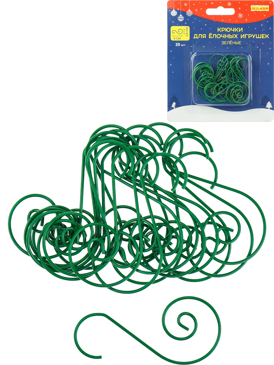 Набор металлических крючков для шаров и украшений 5см, 20шт, зеленые