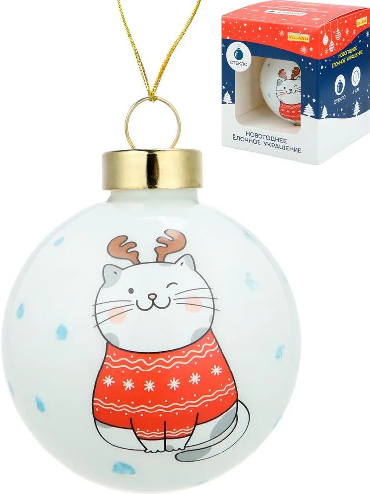 Ёлочный шар 6 см "Котик в свитерке" стекло