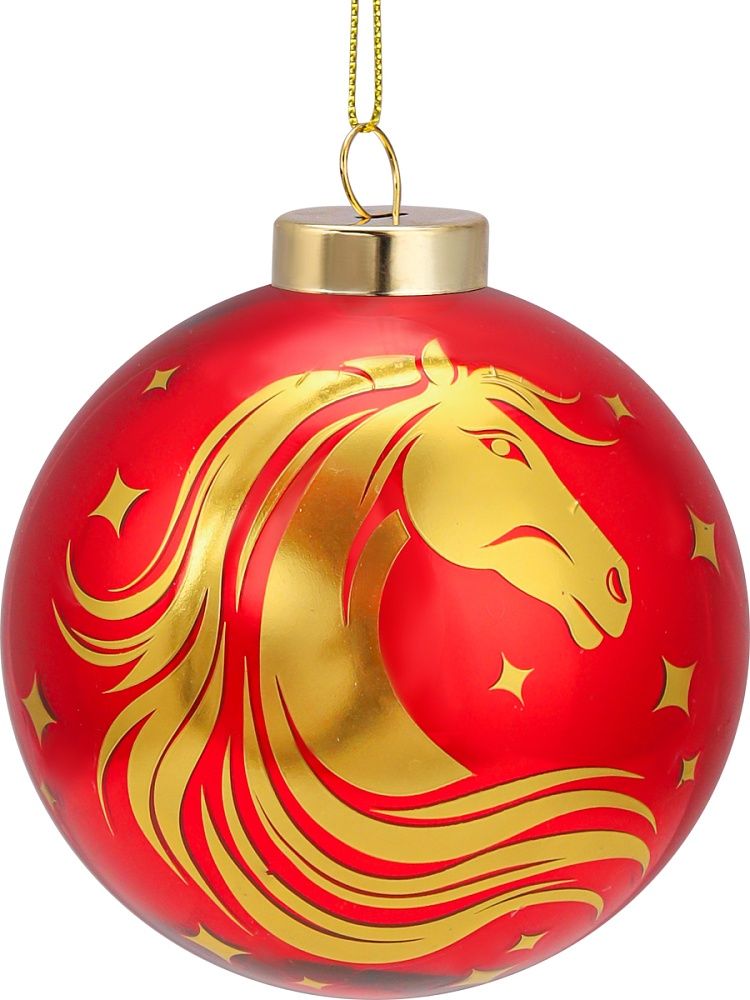Ёлочный шар 8 см "Новогодняя лошадь" Символ года СТЕКЛО