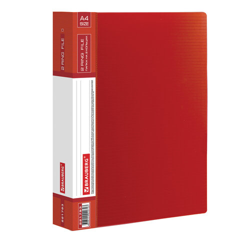 Папка на 2 кольцах BRAUBERG "Contract", 35 мм, красная, до 270 листов, 0,9 мм, 221793