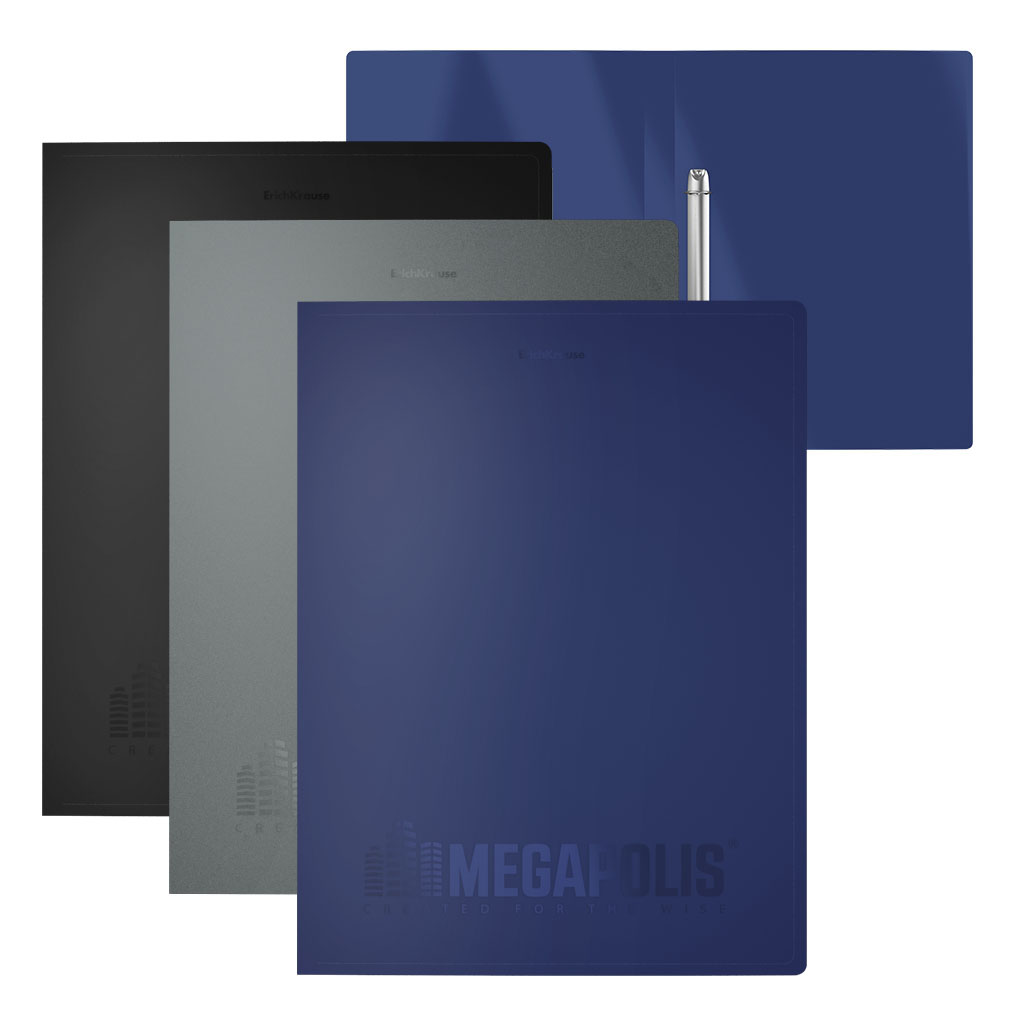 Папка на 2 кольцах пластиковая ErichKrause MEGAPOLIS®, 35 мм, A4, ассорти (в пакете по 4 шт.)