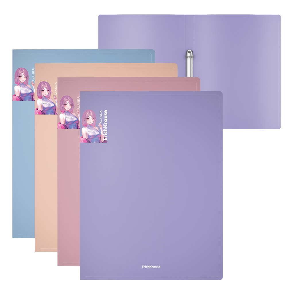 Папка на 2 кольцах пластиковая ErichKrause текстура Бархат Аниме, 24мм, A4, ассорти (в пакете по 4 шт.)