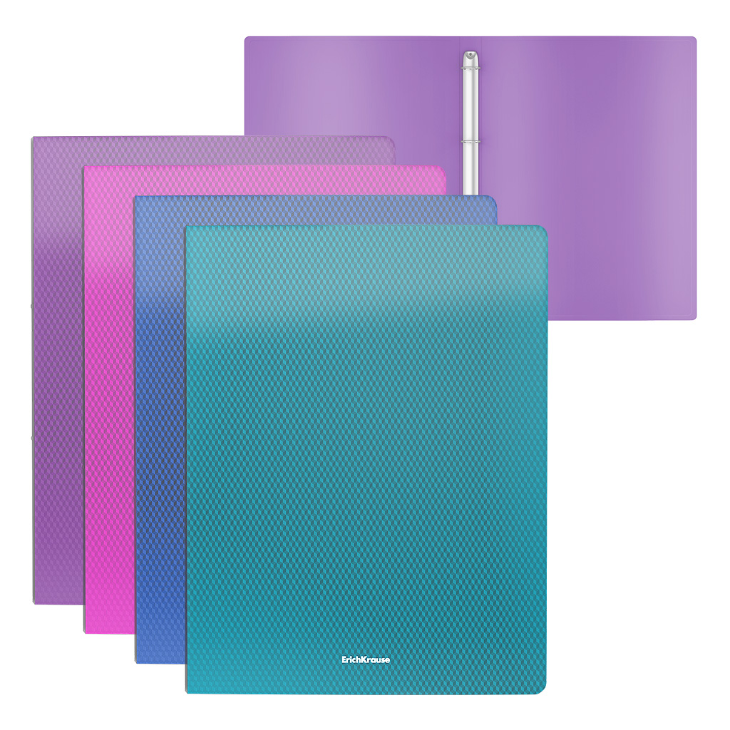 Папка на 4 кольцах пластиковая ErichKrause текстура Алмаз Сияние, 24мм, A4, ассорти (в пакете по 4 шт.)