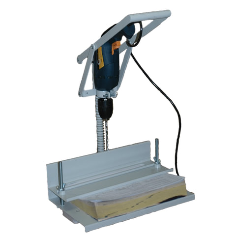 Этот "классический" станок для сверления документов успешно применяется в качестве электродырокола во многих организациях, таких как: прокуратура, суды, многочисленные отделы внутренних дел, городские архивы, проектные и научные организации. Работа на устройстве не требует специальных навыков, сверление бумаги производится электрической дрелью, которая перемещается строго вертикально. После сверления отверстий (обычно достаточно 3-4), пачку документов не вынимая из струбцины, прошивают прочной нитью с помощью иглы. Данная операция проста и не занимает более 1-2 минут.