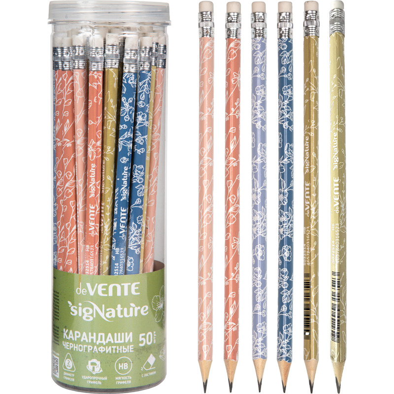 Карандаш чернографитный "deVENTE. Triolino sigNATURE" HB, диаметр грифеля 2 мм, трёхгранный, с ластиком, цвет корпуса ассорти 6 цветов с запечаткой, заточенный, индивидуальная маркировка, в пластиковой тубе