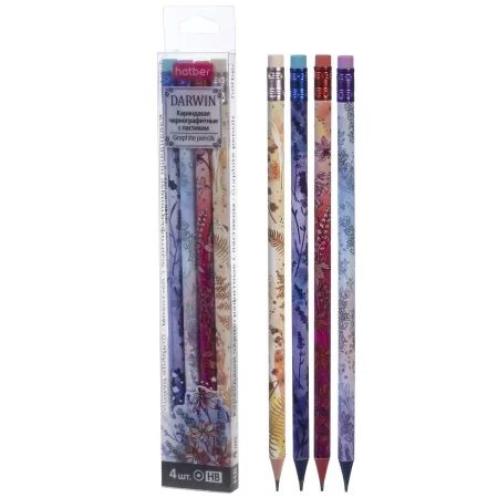 Набор карандашей ч/гр 4шт. "Darwin" НВ с ластиком