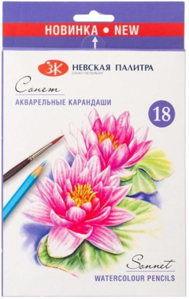 Акварельные карандаши Сонет предназначены для живописи и рисования, могут применяться в смешанных техниках, имеют целый ряд достоинств: яркие, насыщенные цвета; превосходная размываемость (не оставляя следа от штриха); высокая укрывистость красочного слоя; превосходно смешиваются цвета; грифель не нарушает целостность рабочего листа даже при сильном нажатии; деревянный корпус выполнен из гипоаллергенной древесины (липа мелколистная); упаковка снабжена интуитивно понятными язычками, облегчающими открывание упаковки Состав набора: желтый, красный, зеленый, синий, коричневый, черный, оранжевый, кармин, светло-зеленый, голубой, фиолетовый, красное вино. Рекомендации: Для работы акварельными карандашами рекомендуем использовать бумагу для акварели.Сухой штрих, нарисованный акварельным карандашом, стирается сложно. Чтобы не испортить бумагу, линию немного затирают ластиком-клячкой, а затем размывают водой до полного исчезновения цвета и ждут высыхания бумаги. Можно выполнить рисунок и без размытия. В этом