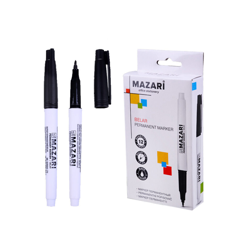 Маркер перманентный BELAR, ЧЕРНЫЙ, пулевидный наконечник, ширина линии письма 1.5мм, картонная упаковка|ДА|M-5004-71