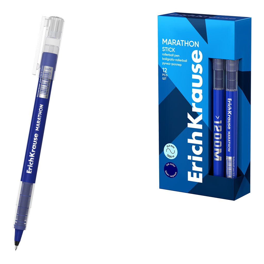 Ручка-роллер ErichKrause Марафон 0.5, цвет чернил синий (в коробке по 12 шт.)