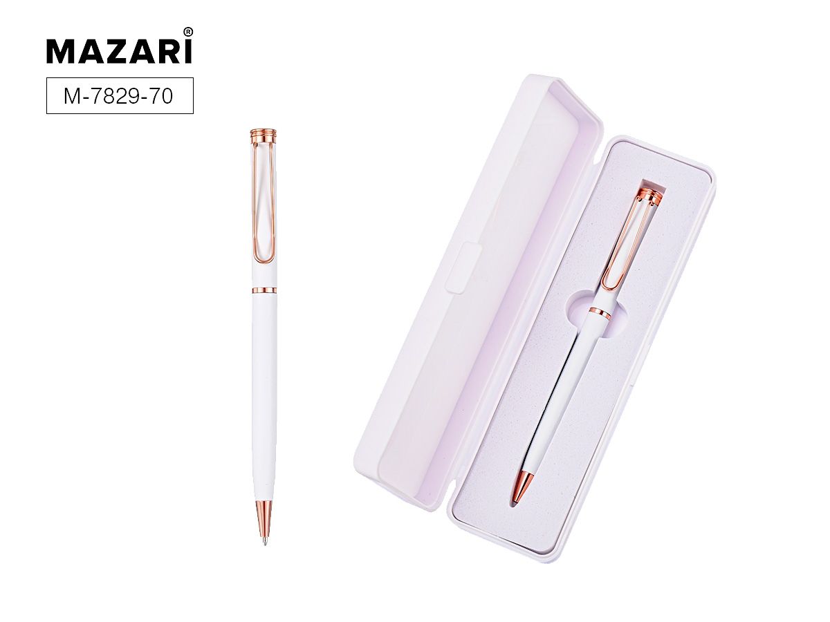 Ручка шариковая прекрасный выбор для тех, кто ценит элегантность, надёжность и стиль. Ведь она помогает создавать любые записи с особым шармом и лёгкостью. Подарочная ручка станет чудесной помощницей и на работе, и дома. С ней удобно подписывать документы, конспектировать важную информацию и просто продумывать разнообразные заметки. Такая красивая ручка очень приятна на ощупь. Механизм ручки подарочной поворотного действия. Эстетичная ручка порадует своим внешним видом и вдохновит на новые достижения. А еще это возможность кого-нибудь порадовать. Такая полезная вещь станет великолепным подарком. Кому она подойдет? Например, это изделие будет отличным подарком мужчине и женщине. Поэтому оно может пригодиться в качестве подарка на 23 февраля и 8 марта. Ручка от MAZARI каждый день будет создавать праздничное настроение. Она притягивает взгляды и дарит приятные эмоции. Это изысканный и функциональный бизнес подарок для деловых людей.