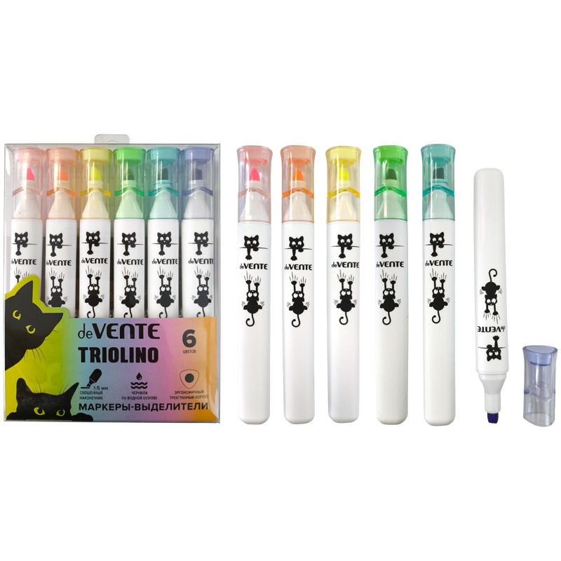 Набор текстовыделителей "deVENTE Triolino. Cat Accent" 6 цв., 1-5мм