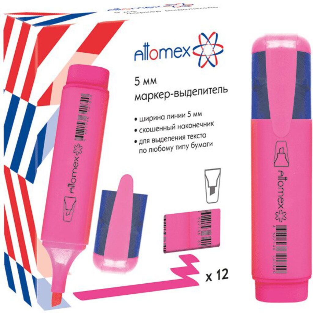 Маркер-выделитель "Attomex" плоский корпус с клипом, скошенный наконечник, ширина линии 1-5мм, розовый