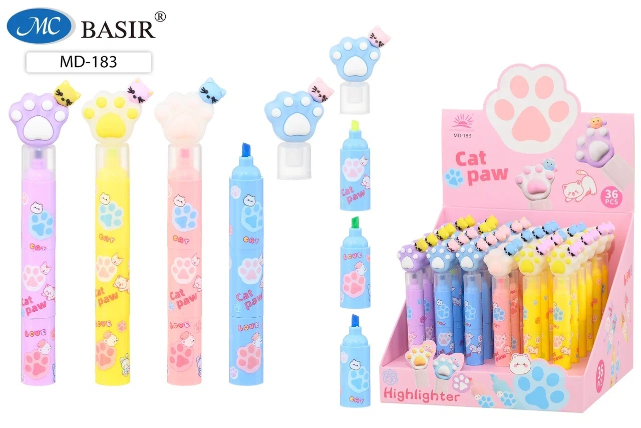 Текстовыделитель Basir "Лапки" секционный, ассорти, флуоресцентные