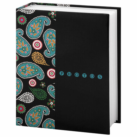Фотоальбом BRAUBERG на 304 фотографии 10х15 см, твердая обложка, "Пейсли", черный с бирюзовым, 390674