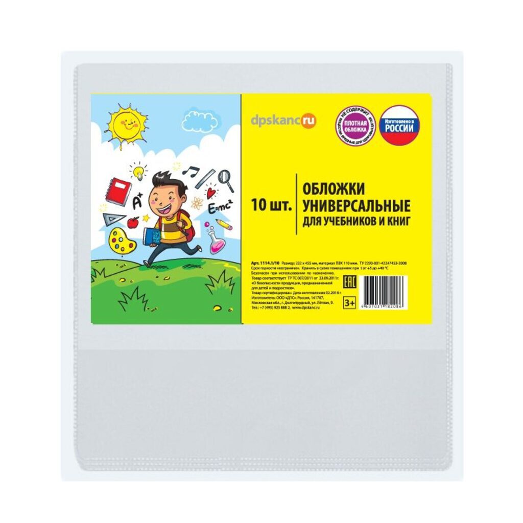 Набор обложек для учебн. унив. (232*455) ПВХ 110мкм прозр. 10шт/уп